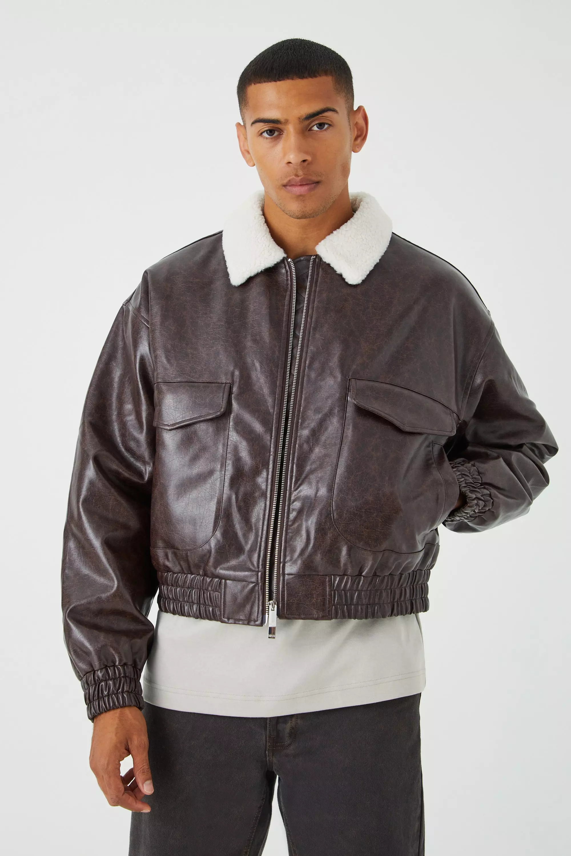 Borg collar new arrivals aviator jacket