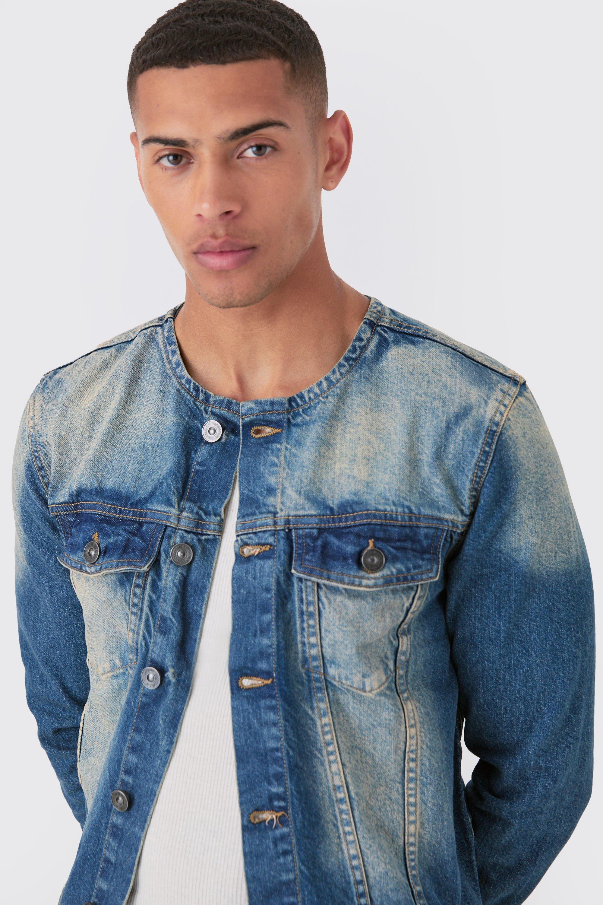 Collarless denim new arrivals jacket men