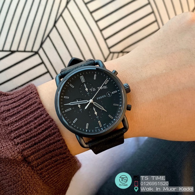 Commuter chronograph new arrivals black leather watch