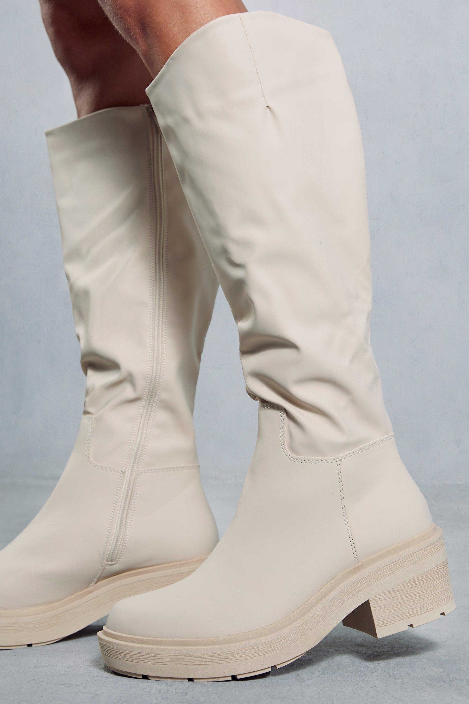 Flat white new arrivals leather boots