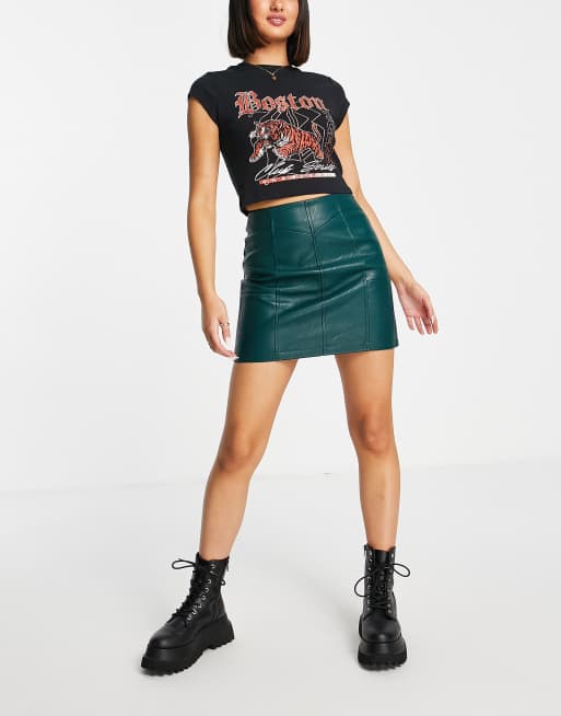 Topshop green new arrivals leather skirt