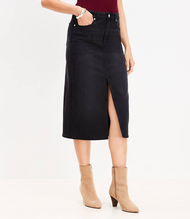 Product Item: Washed black denim new arrivals midi skirt 152-329