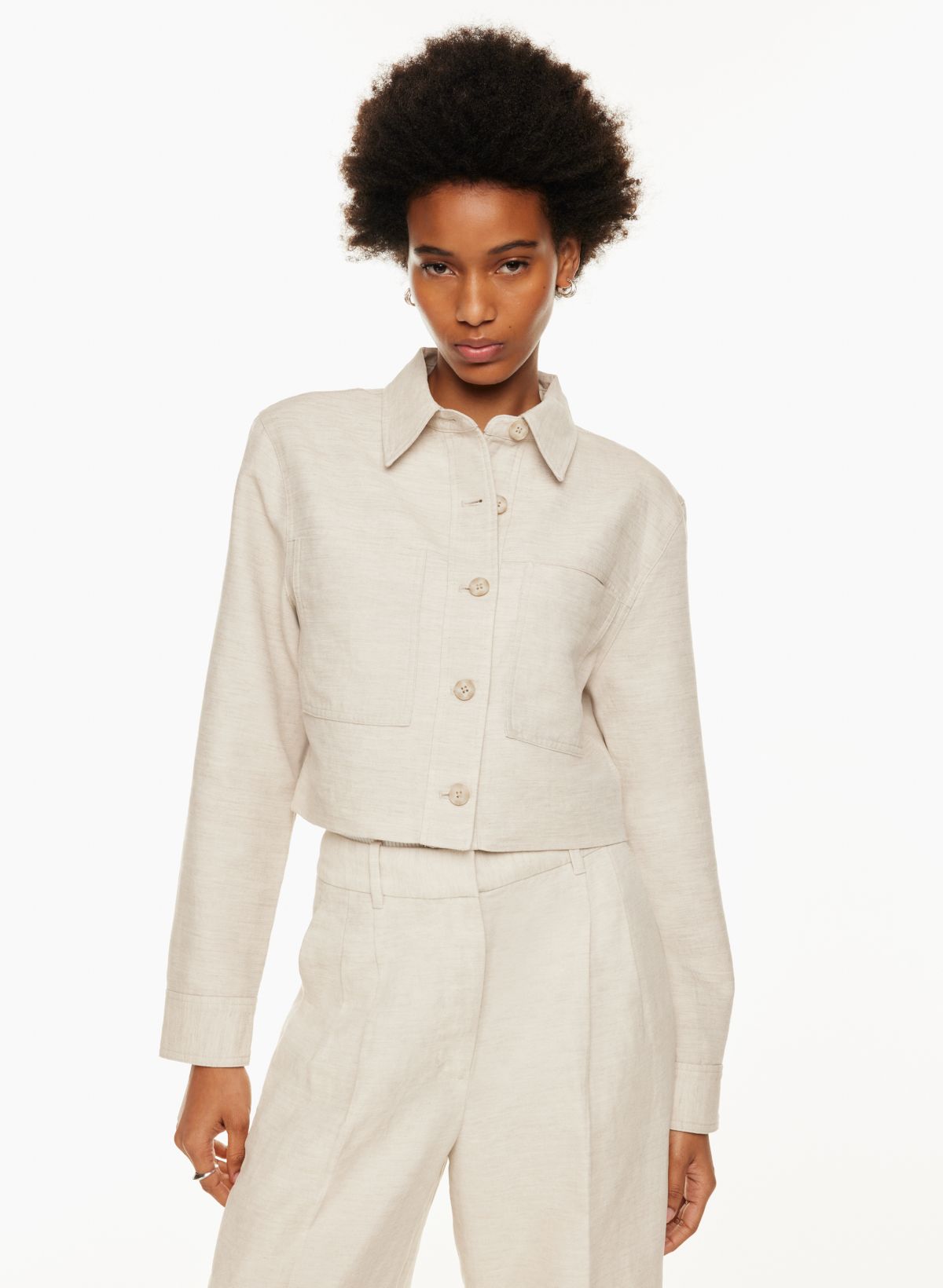 White linen new arrivals cropped jacket