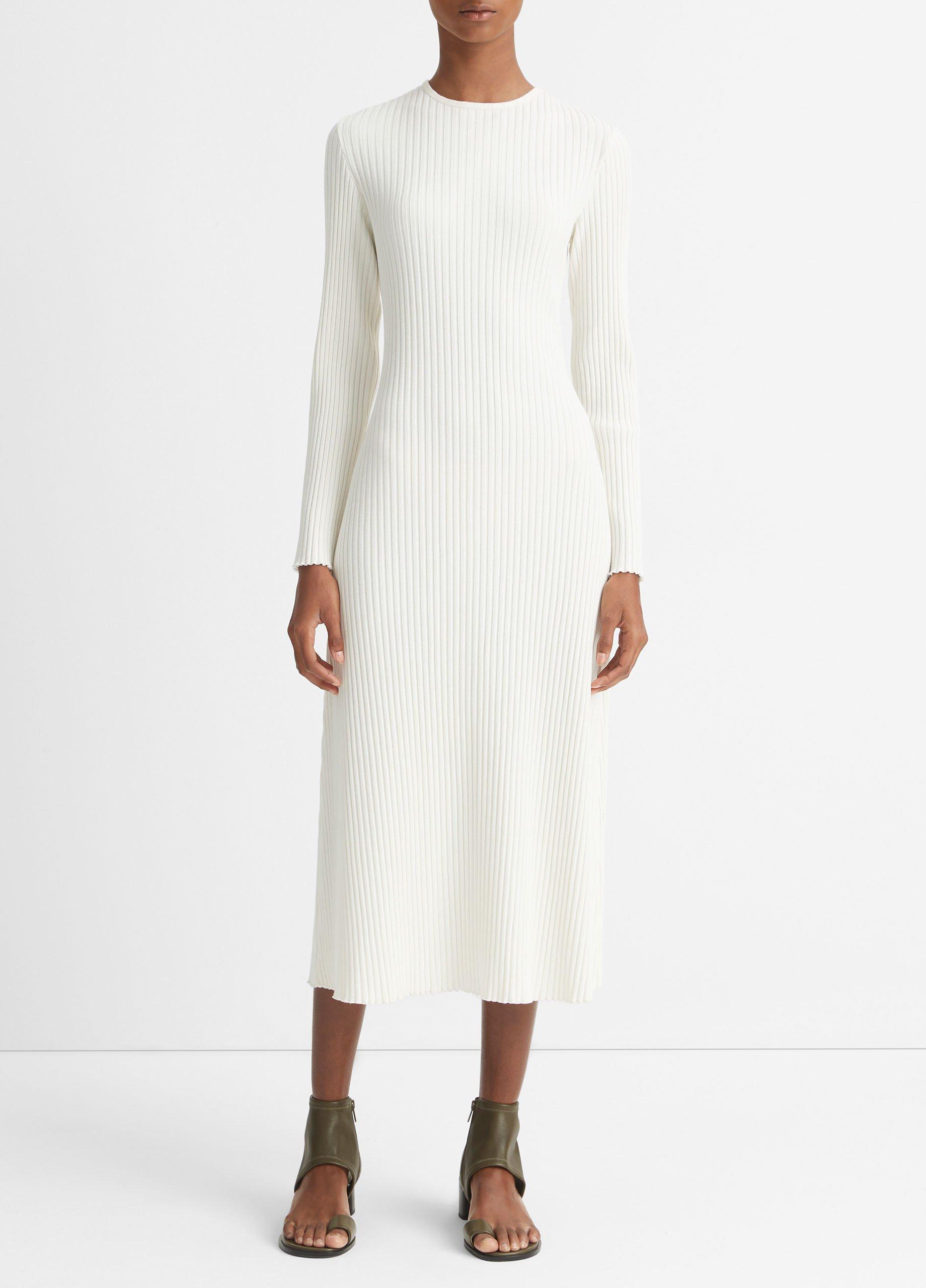 White ribbed new arrivals dress long sleeve