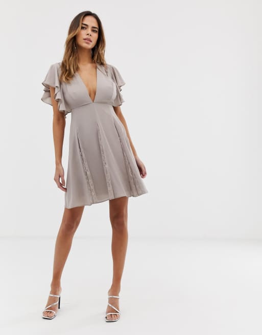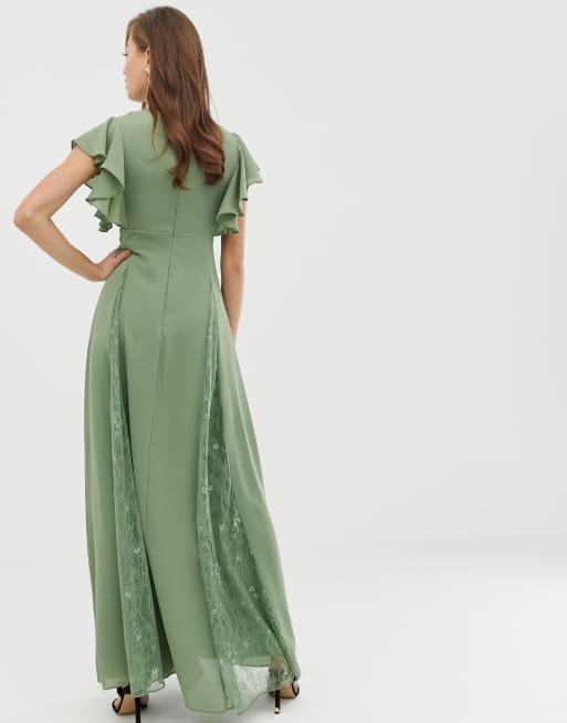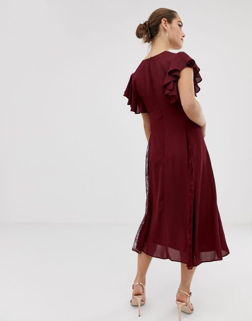 Asos design midi dress new arrivals with lace godet panels