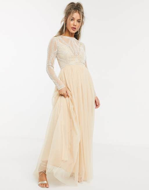 Asos design midi dress with long new arrivals sleeve embellished bodice