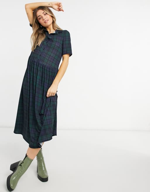 Dark green new arrivals plaid dress