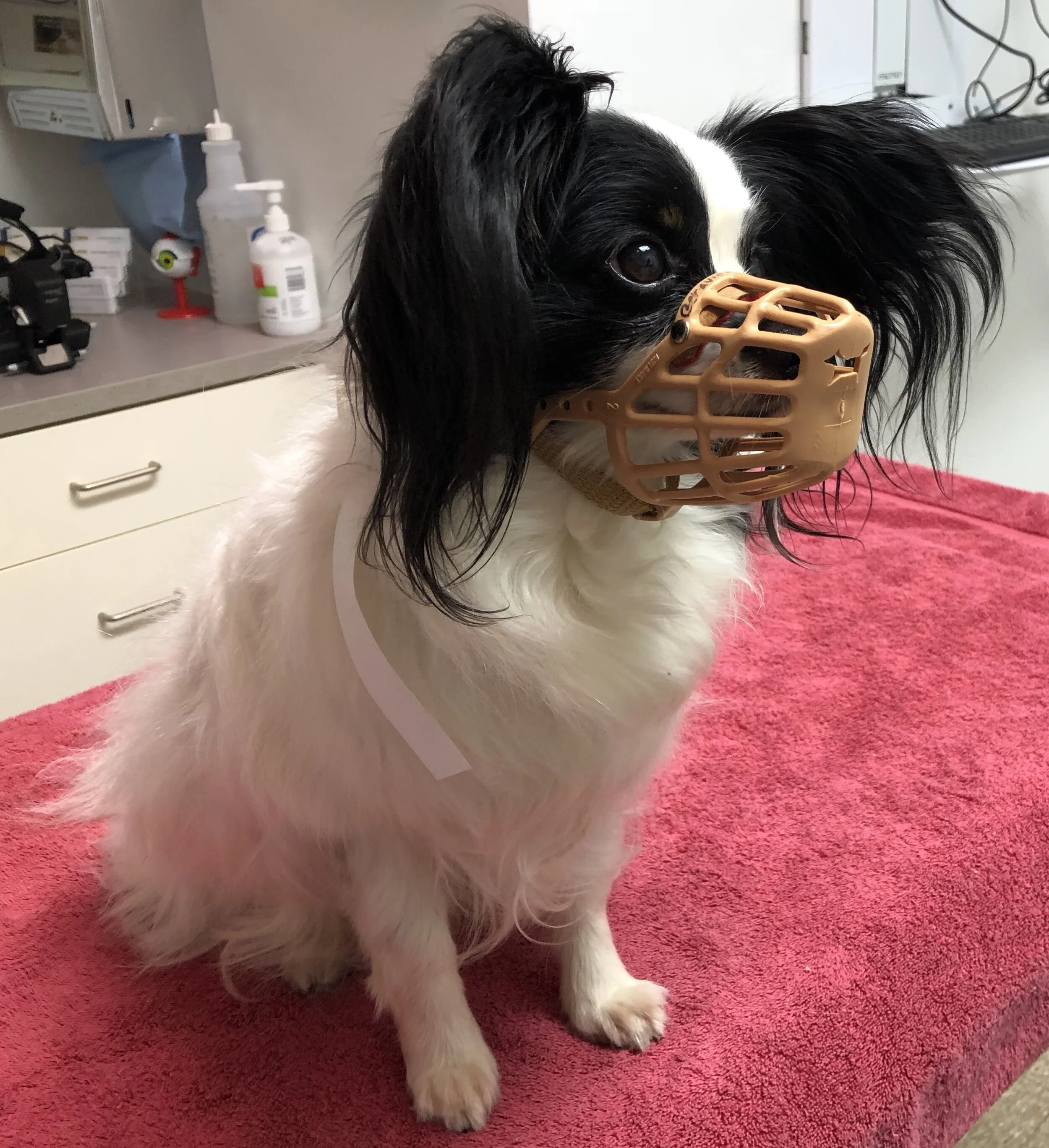 Dog new arrivals wearing muzzle