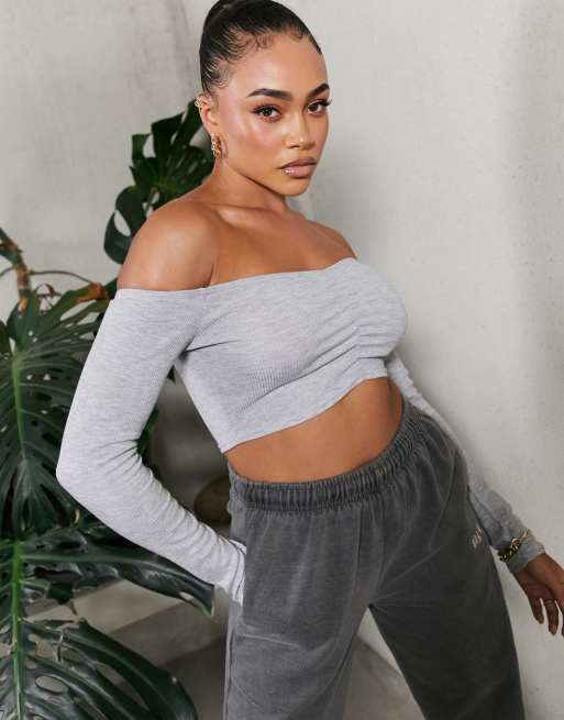 Grey marl crop new arrivals off shoulder sweater
