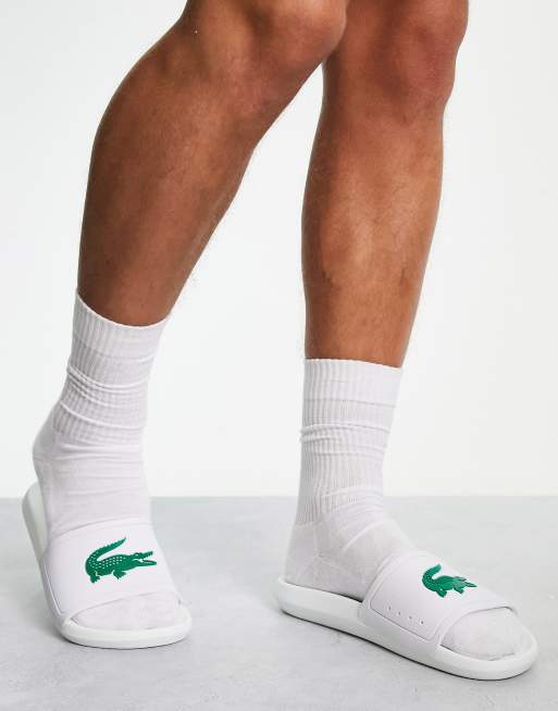 Lacoste sliders new arrivals, Lacoste croco sliders in white new arrivals