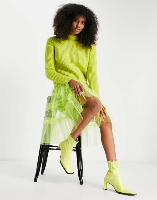 Lime green new arrivals midi tulle skirt