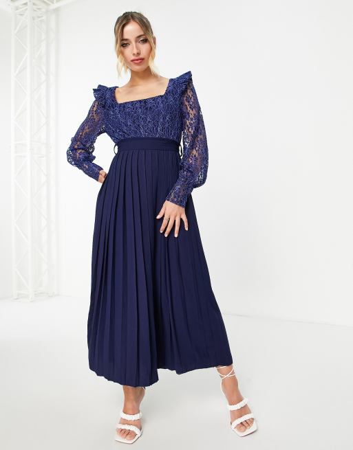 • Little Mistress lace detail midaxi dress in navy