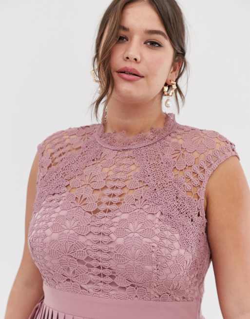 Little mistress lace top midaxi new arrivals dress with pleated skirt in blush