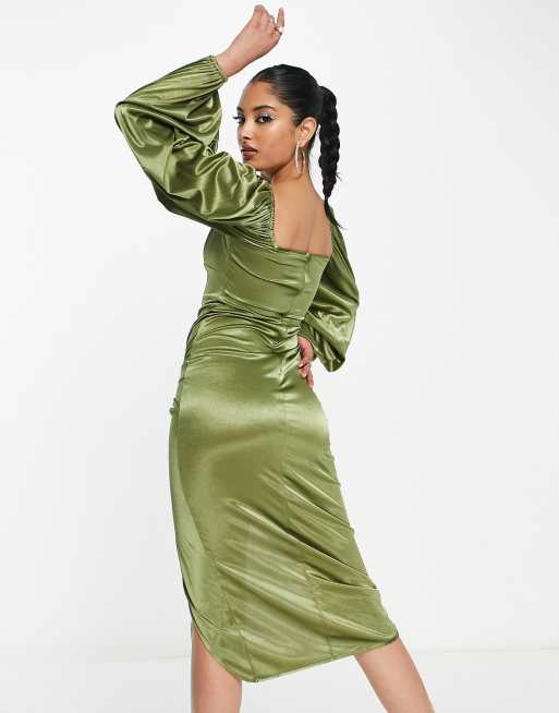 Long sleeve new arrivals satin midi dress