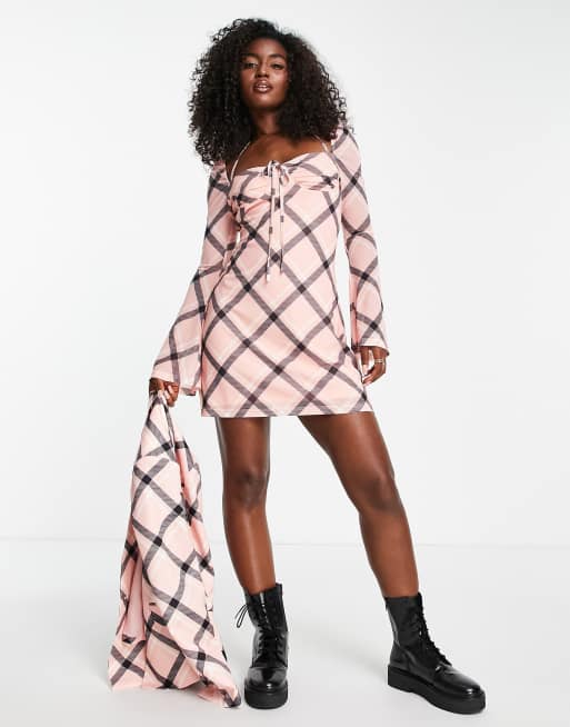 Pink plaid new arrivals mini dress