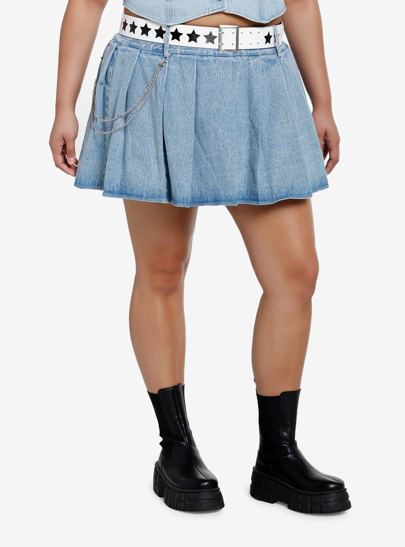 Plus size new arrivals pleated denim skirt