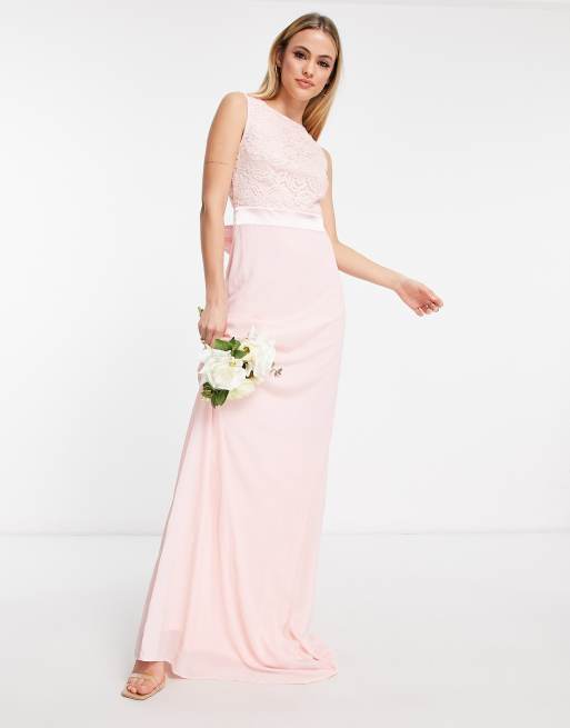 Tfnc sateen bow back maxi bridesmaid new arrivals dress in pink