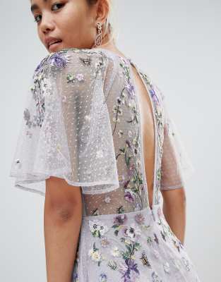 Asos design floral embroidered dobby new arrivals mesh cami strap maxi dress
