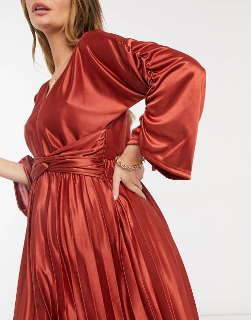Asos edition ruched batwing new arrivals midi dress in satin