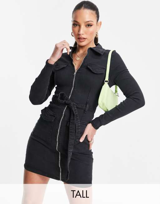 Black denim new arrivals dress with zip